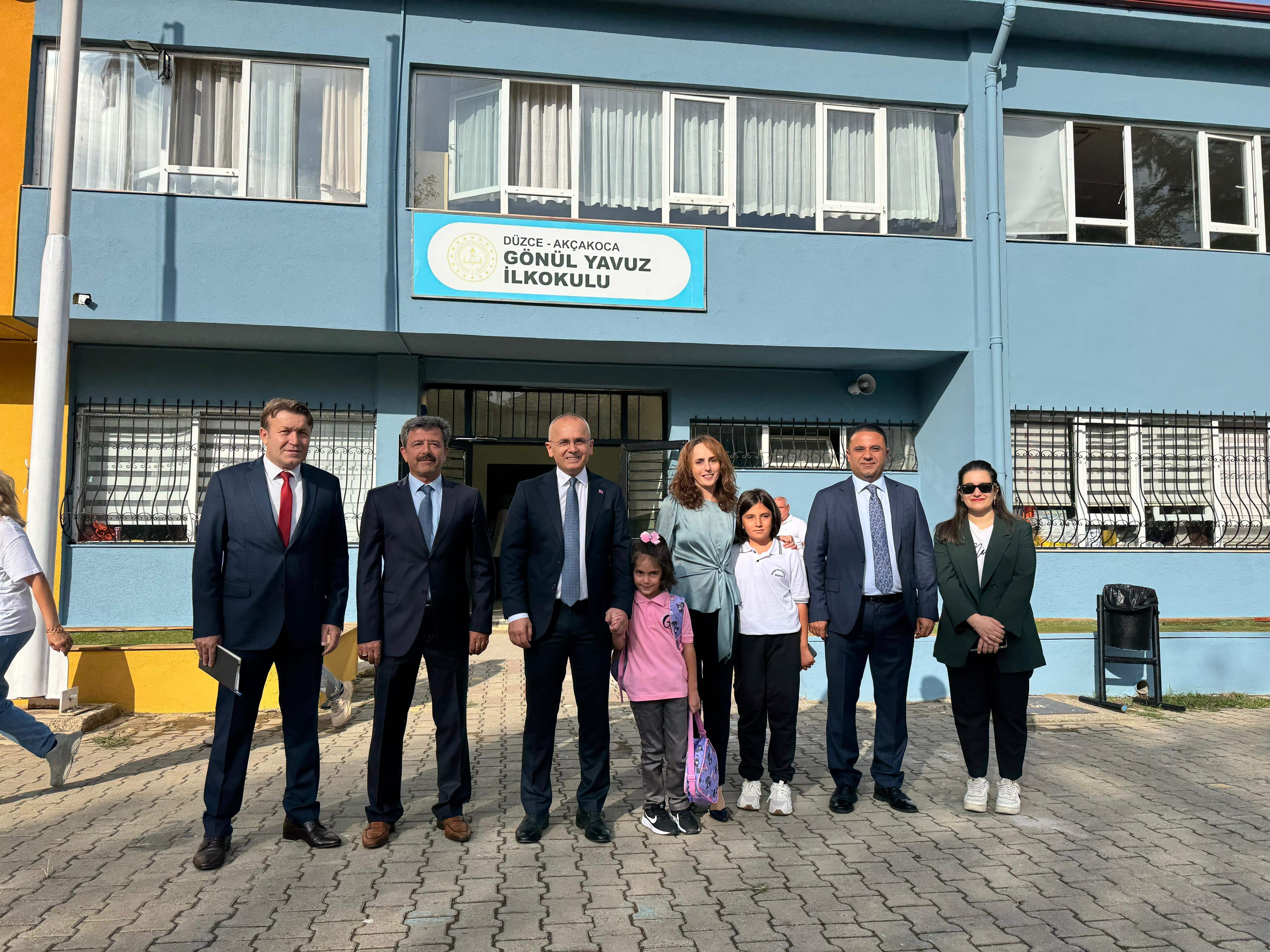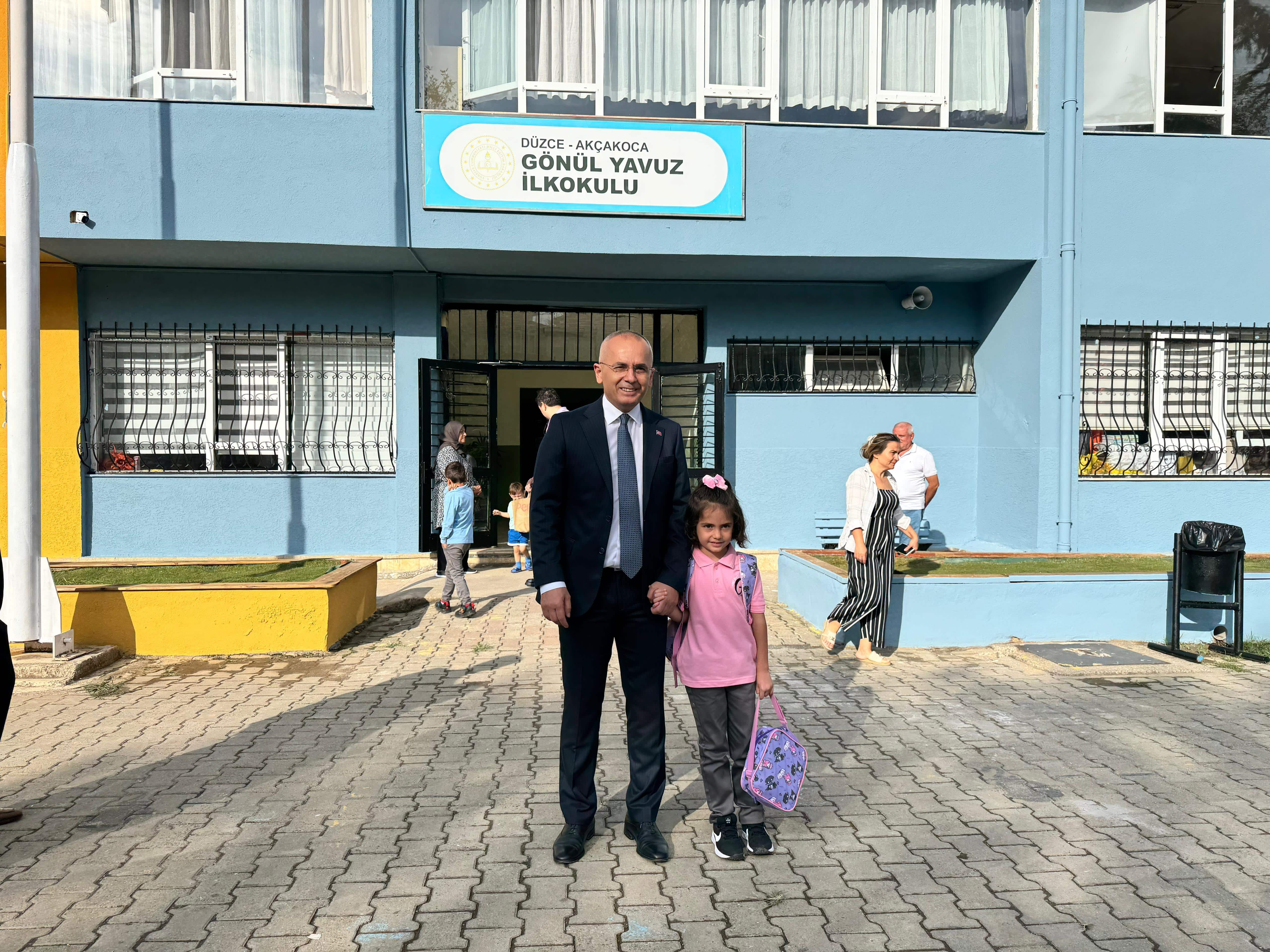 2025-2026 eğitim-öğretim yılının açılış günü dolayısıyla Akçakoca Kaymakamı Sayın Deniz PİŞKİN ve İlçe Millî Eğitim Müdürümüz Sayın Kemal KARADAĞ, Gönül Yavuz İlkokulu'nu ziyaret ettiler.
