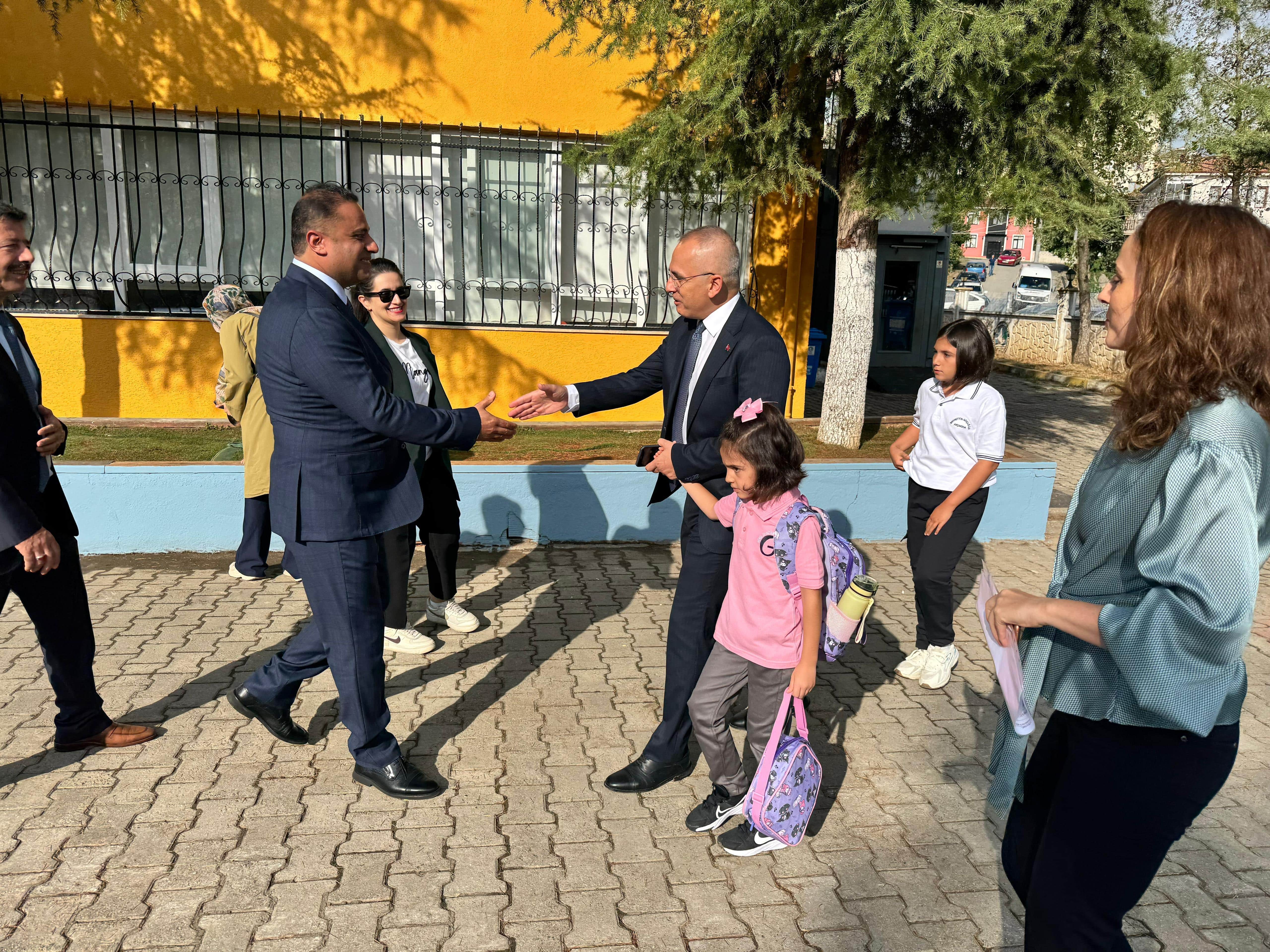 Sınıfları gezerek öğrencilerle sohbet edip, onların heyecanına ortak oldular ve başarı dileklerinde bulundular. Öğretmenlerle de bir araya gelip yeni eğitim-öğretim yılının ilçemiz için verimli ve başarılı geçmesi temennisinde bulundular.